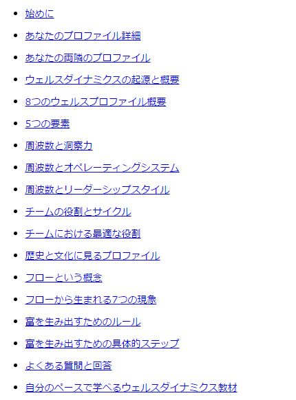 なによりその診断結果は非常に濃いものとなります。以下は結果の目次