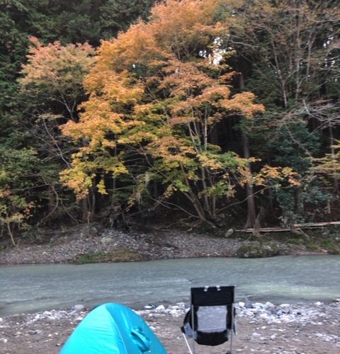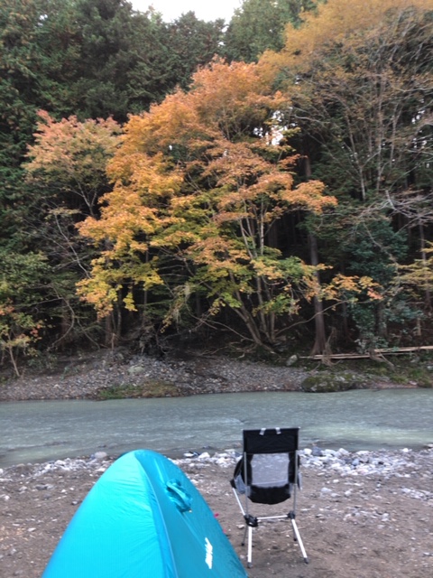 紅葉もいい感じ。テントと椅子立てたら、30分くらい瞑想します。周りの人は「あの人寝てるなー」と思っているはず。