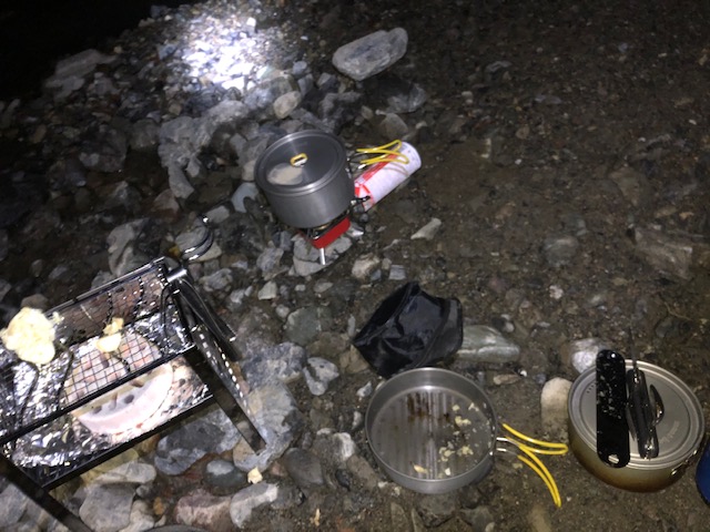 この日は、朝露でテントはびしょびしょ。このへんの対策がまだまだだなと痛感。後でネット検索しまくったので次回は露対策バッチリです。