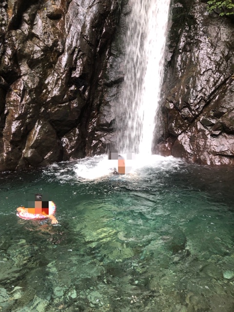 滝のところは170㎝の大人の首くらいまで深さがありますので、子供は浮き輪必須。