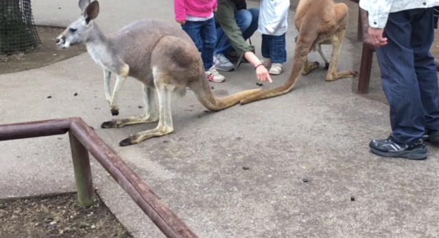 カンガルーは確かに他の動物園でも触れ合えますけど、種類が多かったですね。3種類いました。