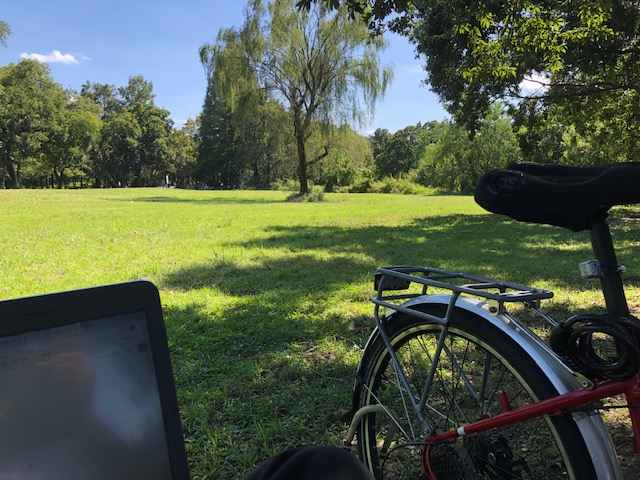 電源とPCとキャンプチェアーとお弁当をもって、自然公園に行ってしまうわけであります。