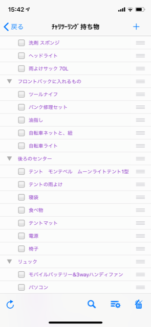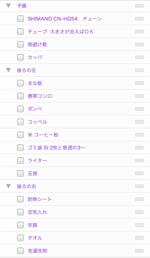 ソロキャンプ初心者・用意した道具は以下。一応googleタスクにまとめています。修正もしやすいので便利。
